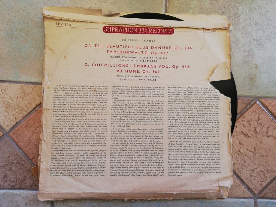 9. Johann Straus. Na prekrasnom plavom Dunavu, Stanje: omot 2 / ploča +4