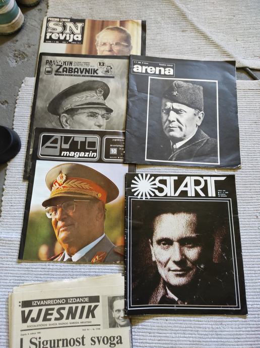 Prodajem razne tjedne i dnevne novine sve vezane za smrt TITA i sve novine su iz 1980 godinae.( Arena,Start, Auto tj,Zabavnik,SN i dnevne Vjesnik,Vecernji,Komunist,Vecer,Delo itd). Ima toga dosta.U dnevnim novinama ima dosta postera od Tita i sve ukupno imam oko 100 tinjak novina od prvih izdanja.Šaljem u dogovoru sa kupcem ,a molim poslati poruku putem Njuskala ili Vibera ili nazovite na broj 097-660-1365.Mogucnost kupovine samo onih novina koje zelite,nije nuzno kupiti sve zajedno.POGLEDAJ SLIKE,OČUVANO!!Naj bolje nazvati posto se novine prodaju i trenutno imam jos oko 40 komada.