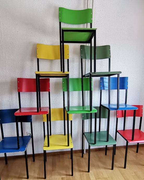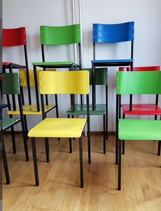 Prodajem 10 starih školskih stolica, cijena po komadu.