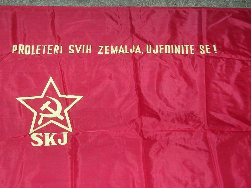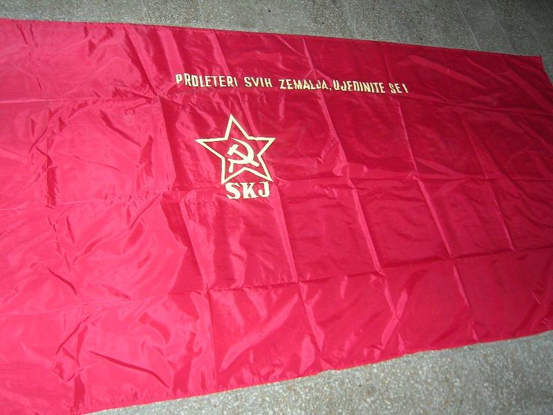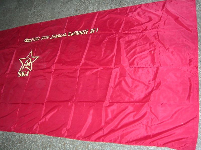 Velika (proleterska) zastava Saveza Komunista Jugoslavije (svilenkaste i krpene) iz vremena YU veličine 240 X 120cm (25€) i 310 X 160cm (35€).
