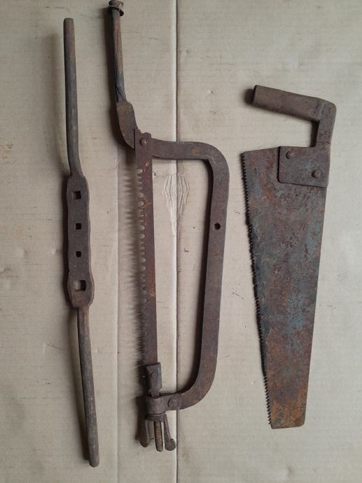 Prodajem stari alat,rad kovača,testera za dervo,testera za obrezivanje voćki,držač za ureznice,stanje kao na slici,za dekoraciju,muzej,kolekciju...šaljem pouzećem na račun kupca,u kompletu za 15 eura,pojedinačno skuplje
