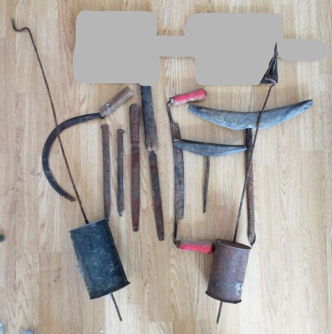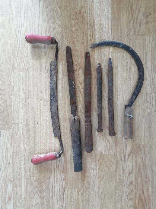 - stari alati; lukič (srp) 5€, špice / klinovi, turpije 10€, maklja (kalafatski alat za obradu drva) 14€.