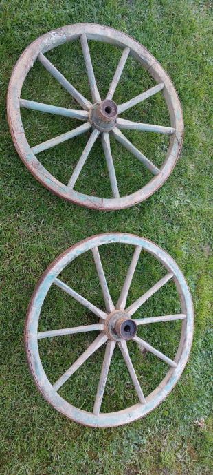 Prodajem 2 stara drvena kotača u srednjdm stanju pogodni za restauraciju ili ukras, cijena po komadu 75 eura.