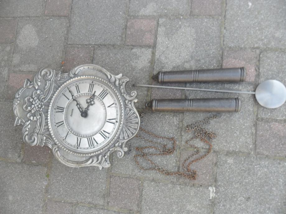njemačke proizvodnje,kompletan,potreban servis jer dugo stoji,tako da nemogu reči da je ispravan.dimenzije su 49 x 29 x 10(v x š x dubina) bez lanaca i utega,,,,,,imam još desetak starih satova koje možete pronači na mojim ostalim oglasima
