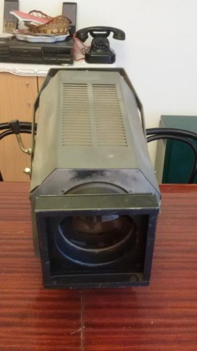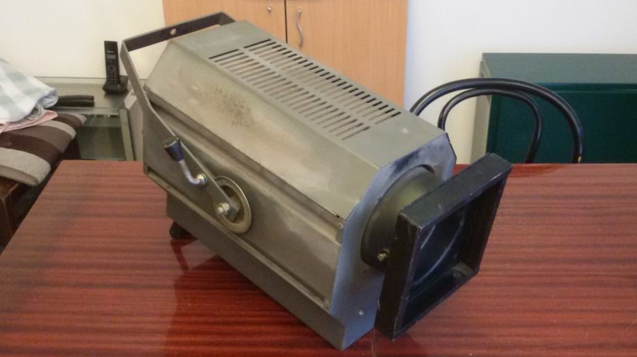 Stari kazališni reflektor u odličnom stanju. Tip: R-1000; proizvođač: Scena, Ljubljana, Jugoslavija; godina proizvodnje: 1982.g.; serijski broj: 1920; snaga: 1000 W; napajanje: 250 V;