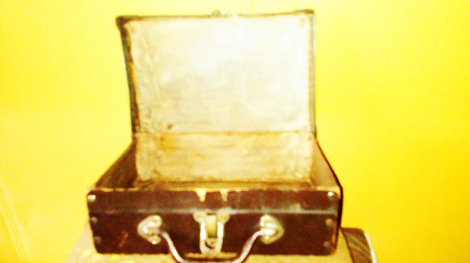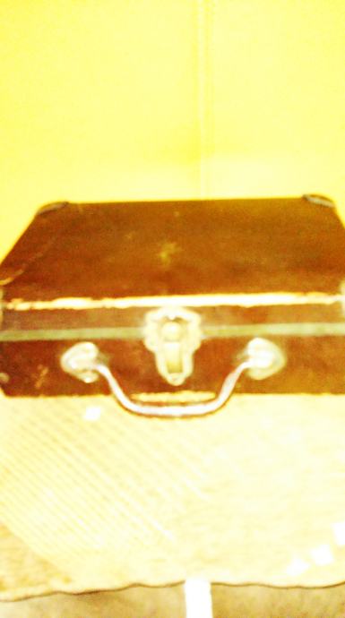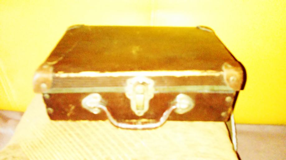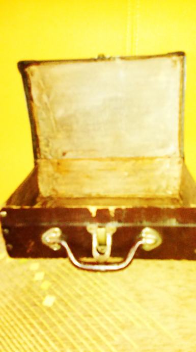 stari kartonski koferčić sa originalnom drškom i kopčom, dimenzije 28x19x9cm.