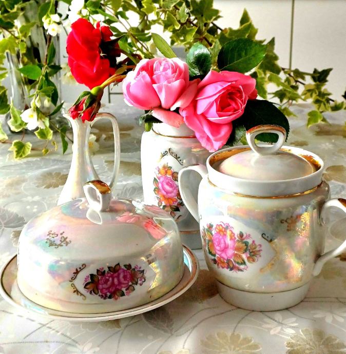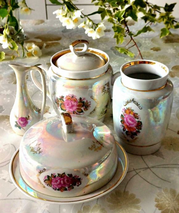 Made in SSSR, rijedak na našem području. Bombonijera je imala nezgodu, ali je uspješno zalijepljena. Komadna cijena 13 eura, cijeli set 30 eura.