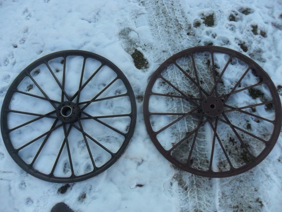 idealni za razne dekoracije,izrađeni od tvrde masivne plastike,izgledaju jako čvrsto,mislim da su bili na nekom biciklu ili slično,promjer 64cm,širina utora za gumu 3cm,jedan je smeđi a drugi crni,navedena cijena je za 0badva,kom i možemo mijenjati za starine ako mi odgovara i imam još raznoraznih drvenih i metalnih kotača koje možete vidjeti opširnije na mojim ostalim oglasima