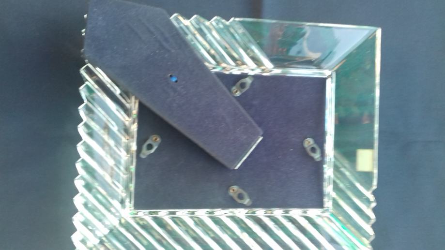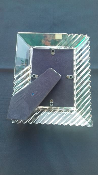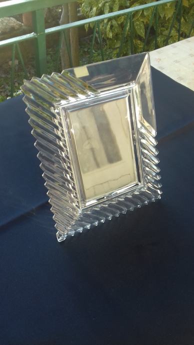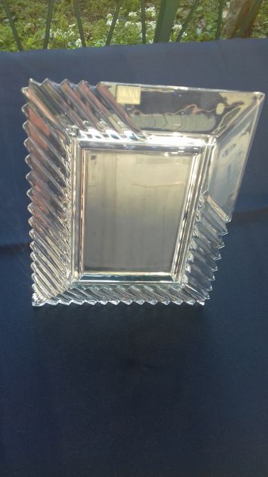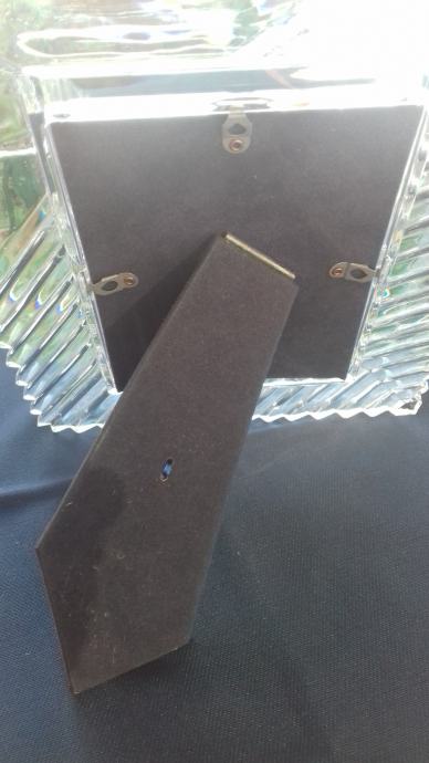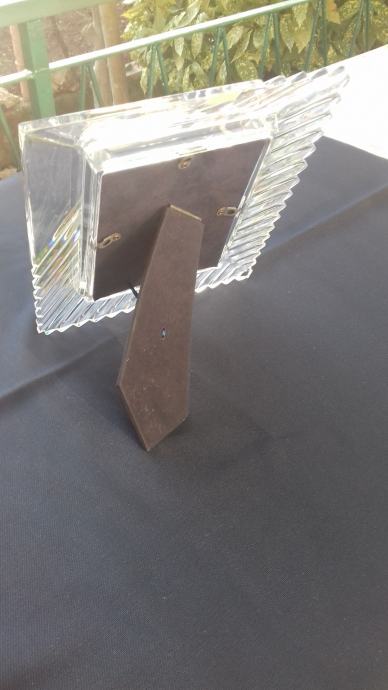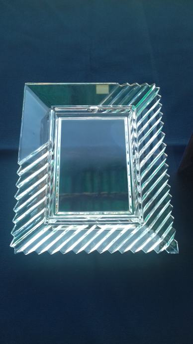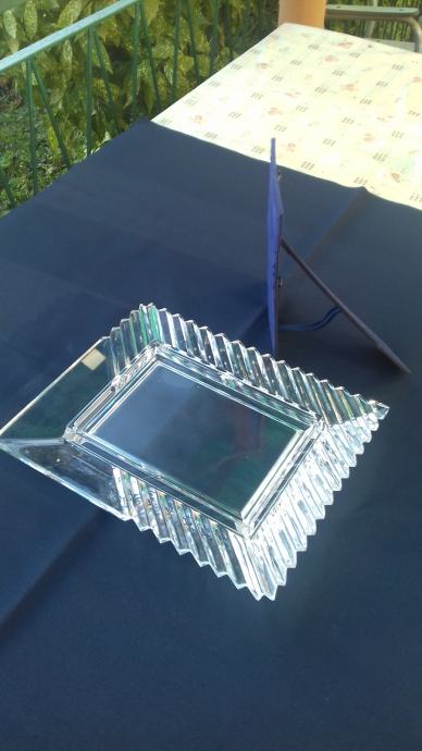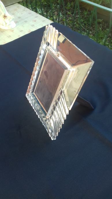 Prodaje se stari kristalni okvir marke Mikasa, proizveden u bivšoj Jugoslaviji. Okvir se sastoji od kristalnog tijela i podloška sa podupiračem napravljenih moguće od čvrstog kartona koji su presvučeni moguće tkaninom ili sličnim materijalom tamno plave boje. Dimenzije okvira su: ukupna visina okvira cca 27,6 cm, ukupna širina cca 22,5 cm, visina samo utora za sliku cca 17 cm, širina samo utora za sliku cca 12 cm. Cijena okvira je 54 eura. Mogućnost osobnog preuzimanja u Zadru. Kontakt broj mobitela 091 131 10 36.