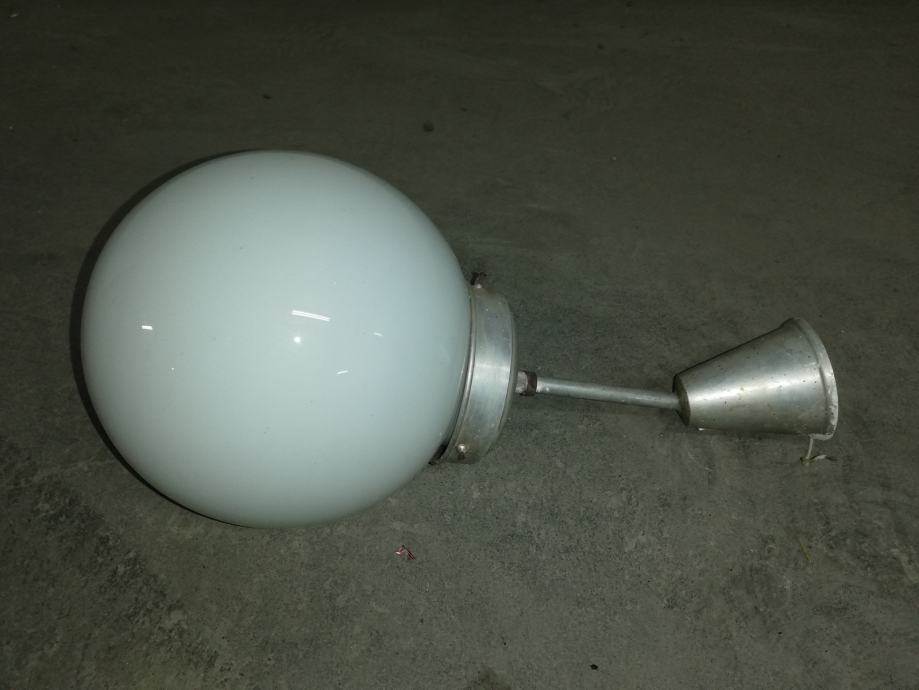 Stari luster, kugla od mliječnog stakla, nosač od aluminija. Kasni Art Deco.