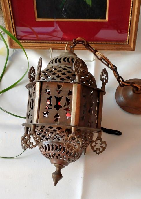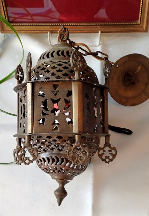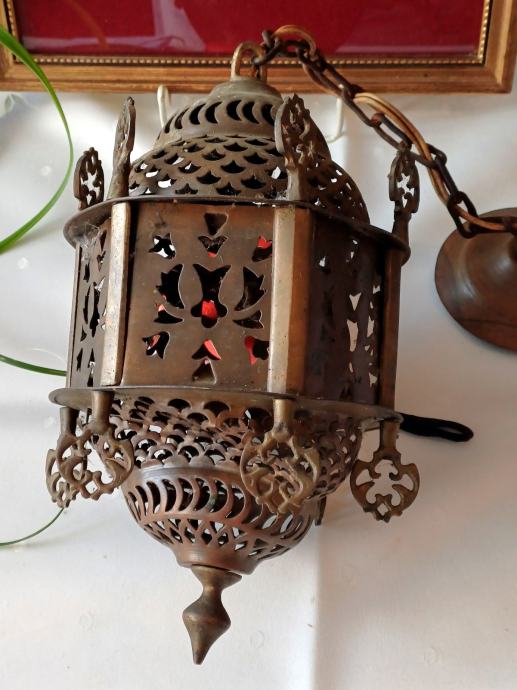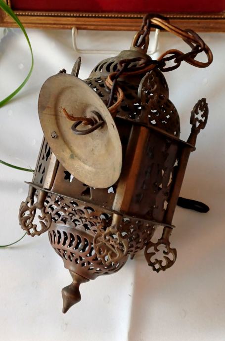 Zanimljiv stari orjentalni luster od mesinga ukupna dužina cca 50 cm, promjer cca 16 cm. Namjeno ostavljam patinu.