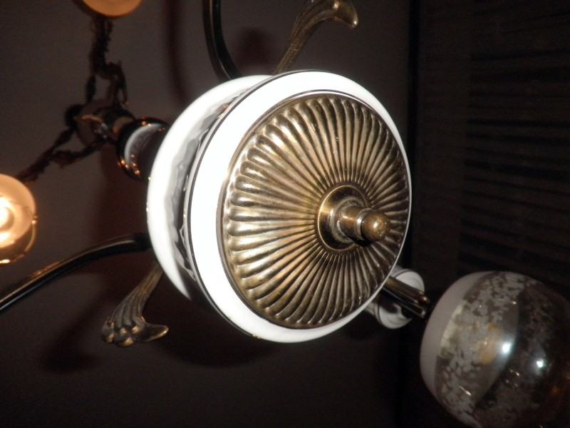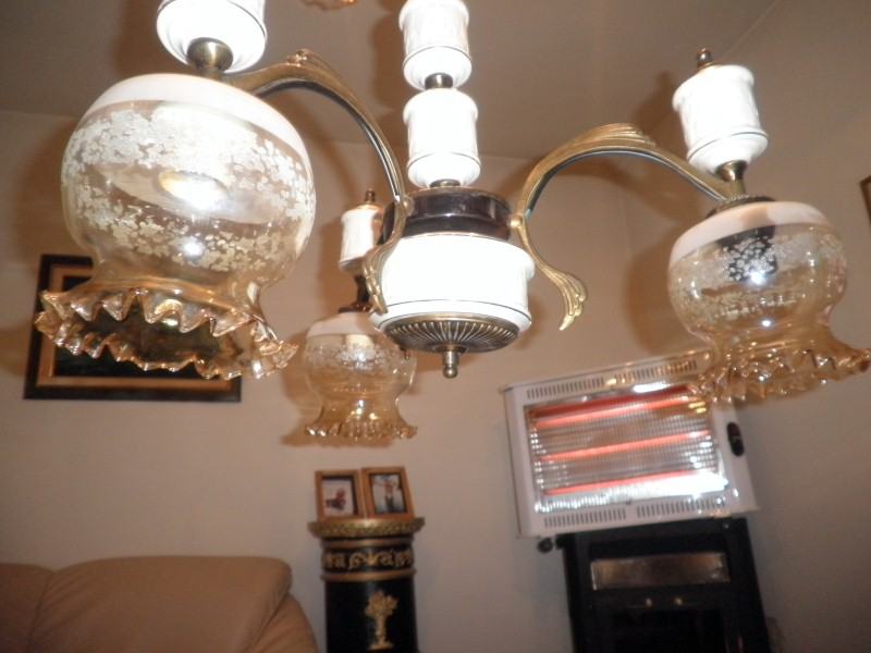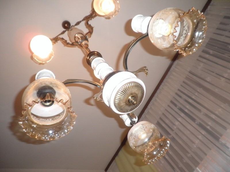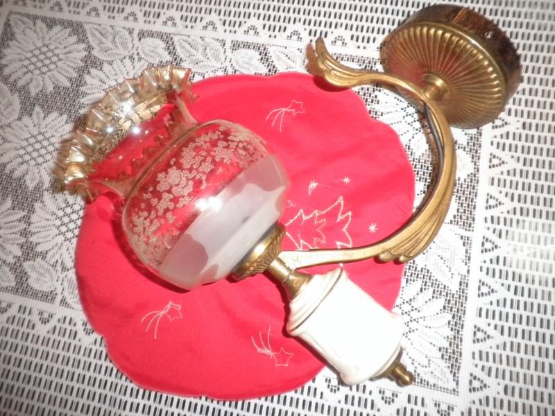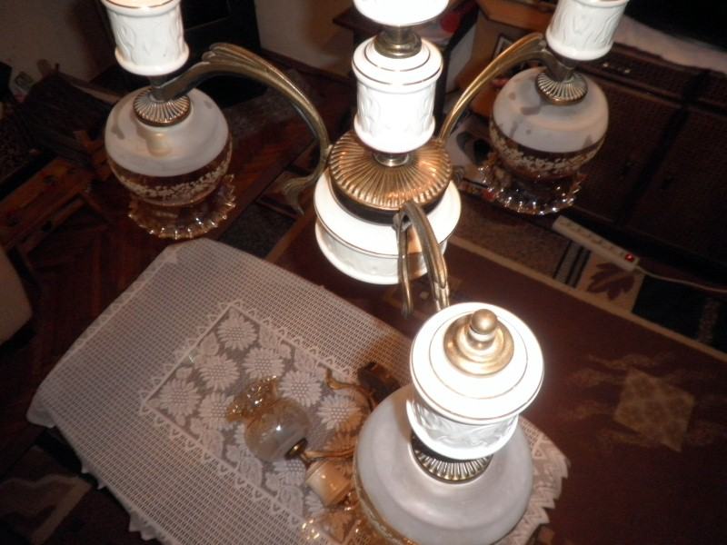 Ispravni stari prekrasni lusteri - zidni luster + plahonski potpuno isti luster, kombinacija porculan, mesing i staklo ...