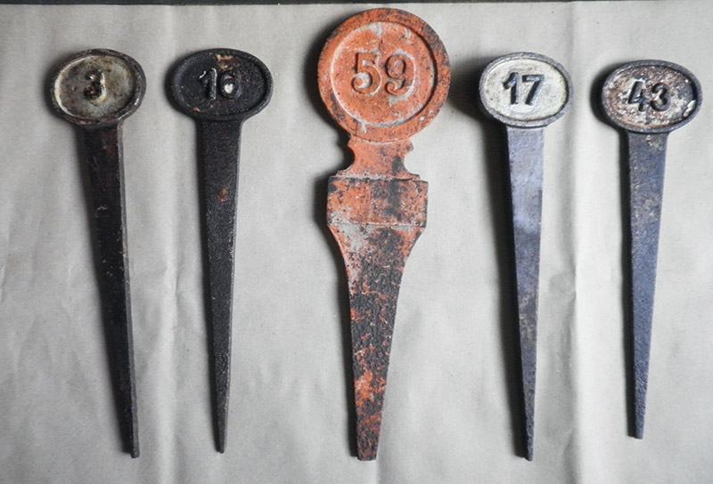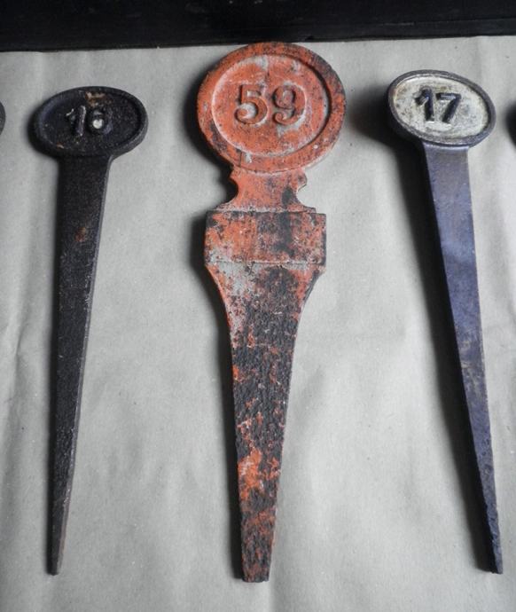 Stari, teški markeri od lijevanog željeza, doba Austrougarske, br. 59 duž. 36 cm, mogućnost raznih namjena /kućni broj?/