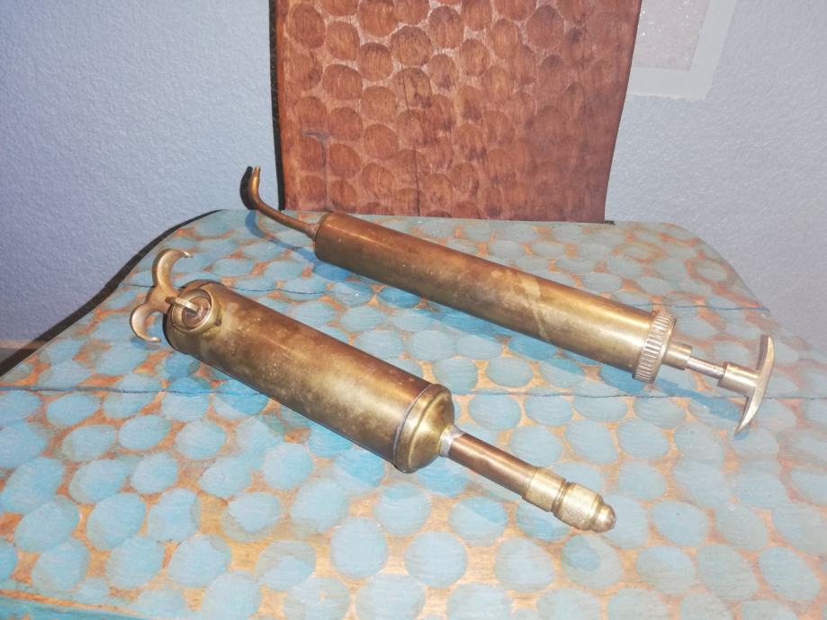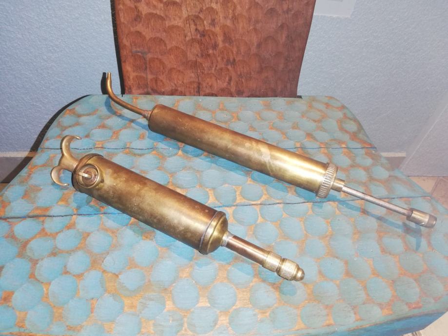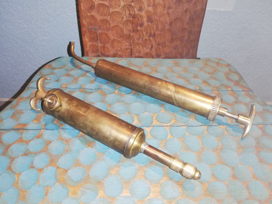 Stari mesingani pribor - mazalice - 2 komada, u odličnom stanju iz privatne kolekcije. Raritet. Dimenzije: dužina. 27,0 cm i 36,0 cm.