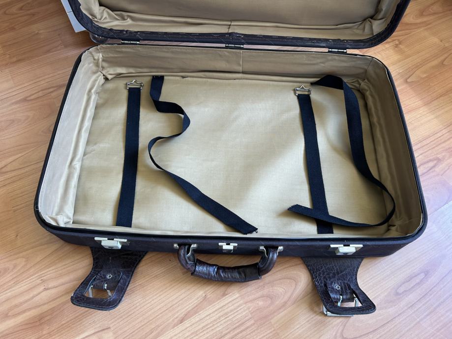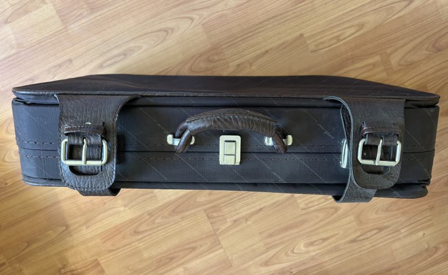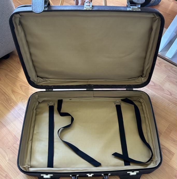 Smedji kofer, retro izgled, ocuvan i spreman za koristenje.