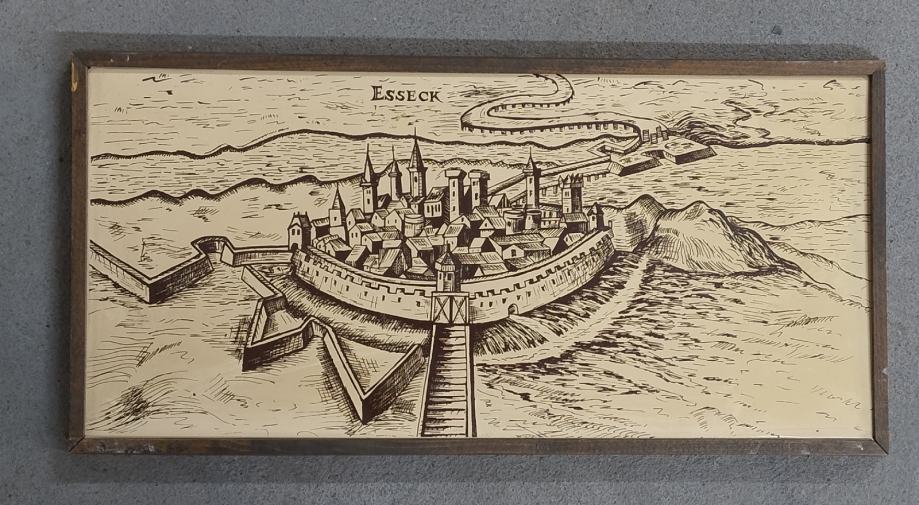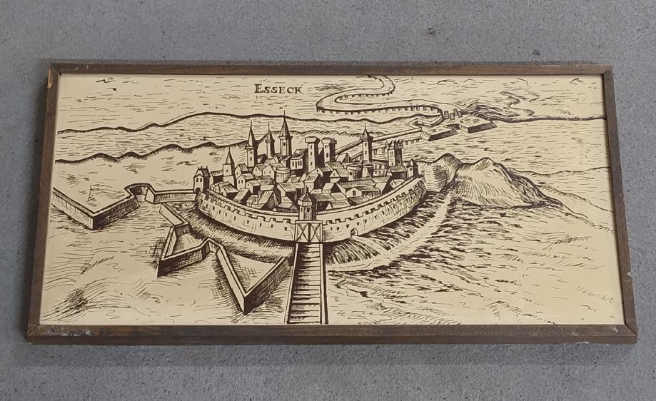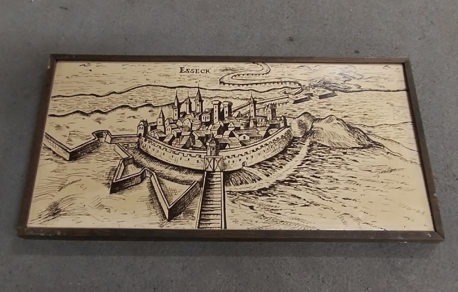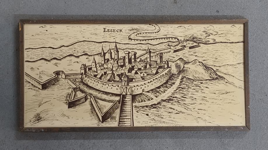 Stari Osijek, slika na emajlu, ručna izrada, Dekor, Zagreb.