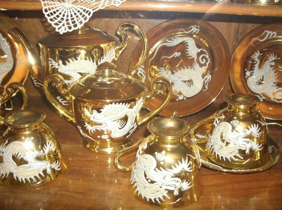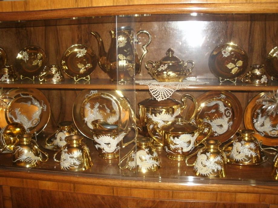 Servis POZLAČEN 24 karata za čaj i kavu sa vrčevima i tanjuričima velikim i malim 40 dijelova JAPANSKI star 70 godina cijena 1000 eura.