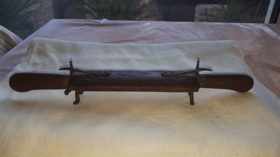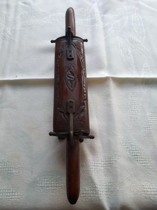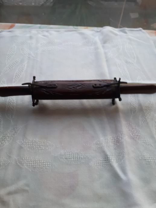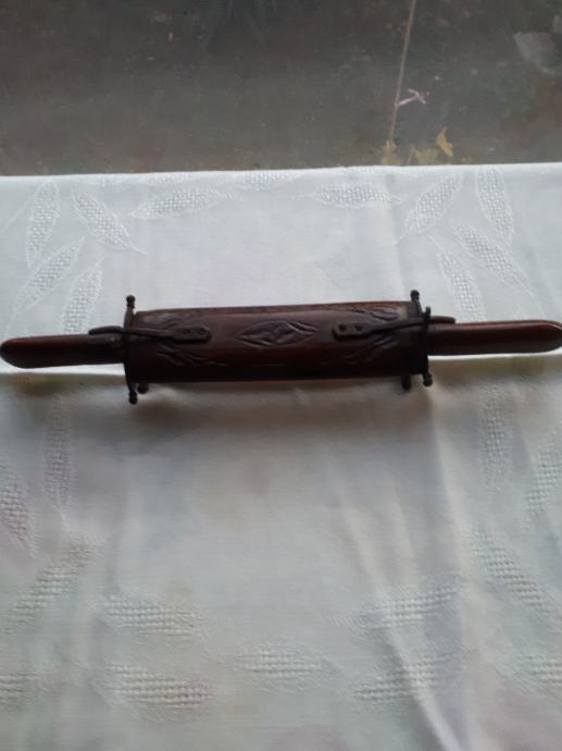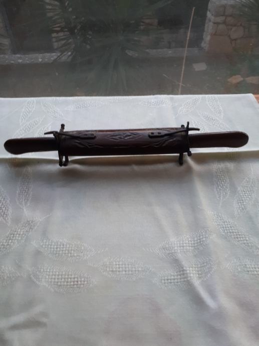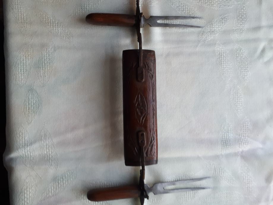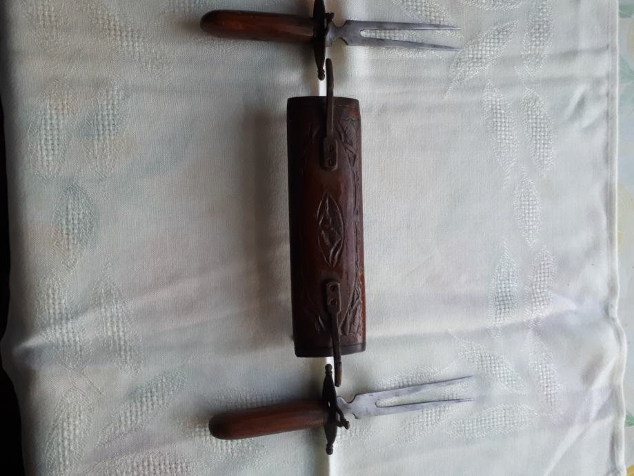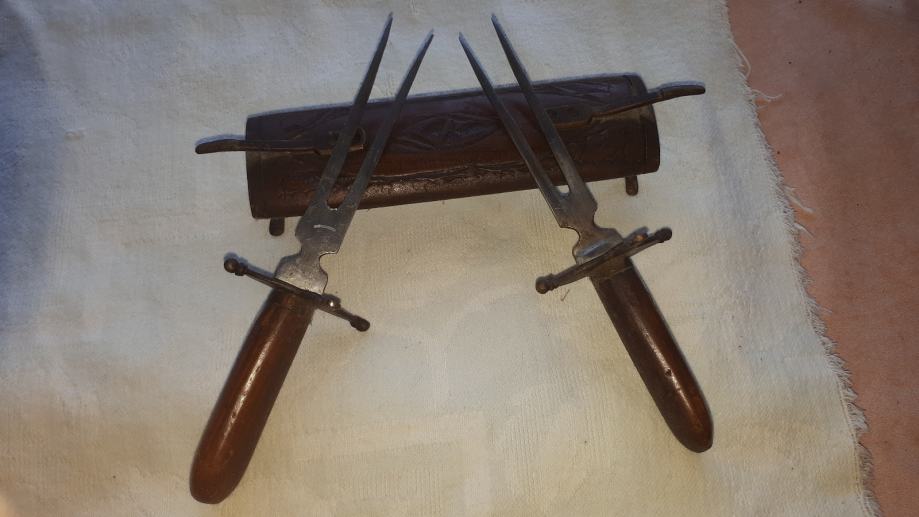 Dobro uščuvan pribor od rezbarenog drva u kombinaciji