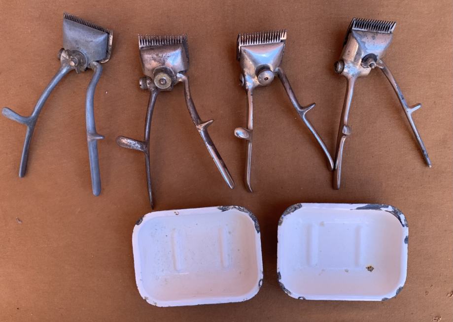 STARI PRIBOR ZA ŠIŠANJE - 4 MAŠINICE + DVA EMAJLIRANA DRŽAČA ZA SAPUN