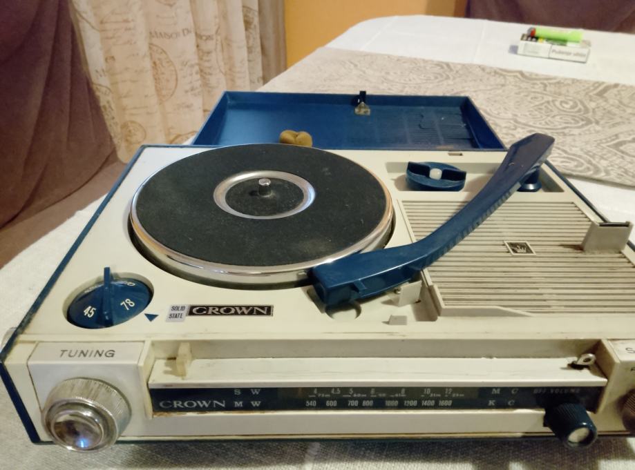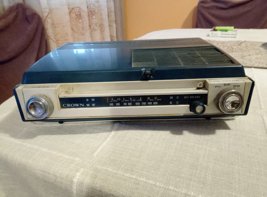 Vitange prijenosni gramofon radio Proizvođač Crown iz 1970 godine Neispravno