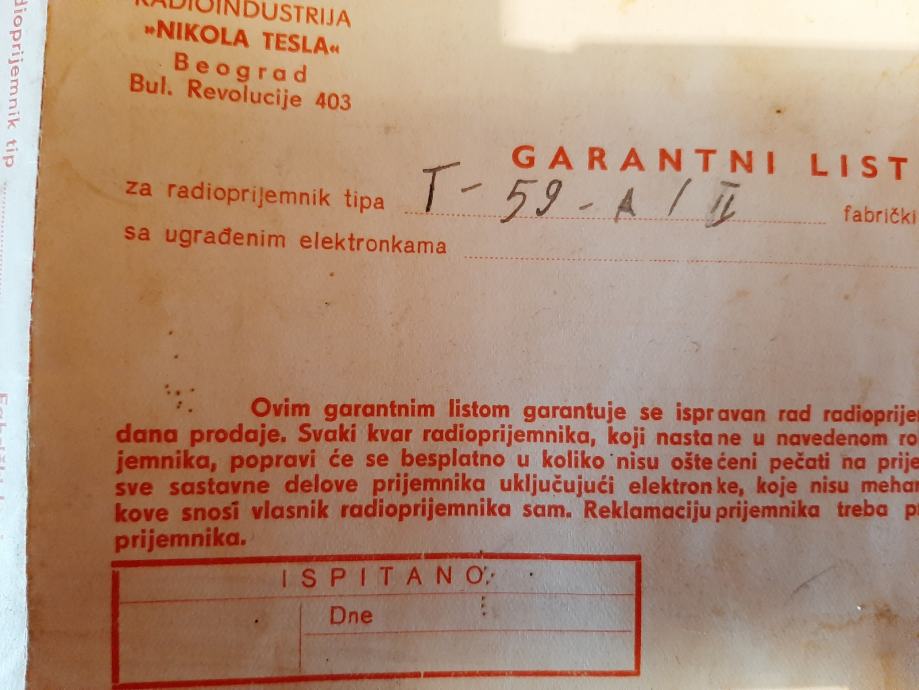 Stari radio marke "NIKOLA TESLA" model T-59-A