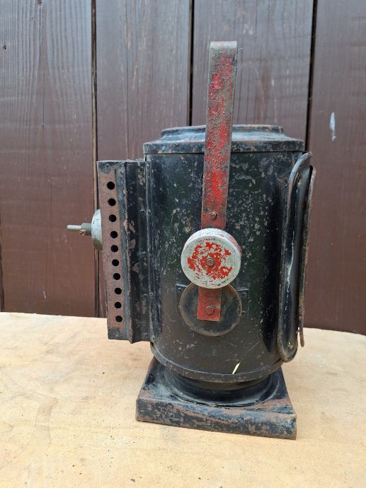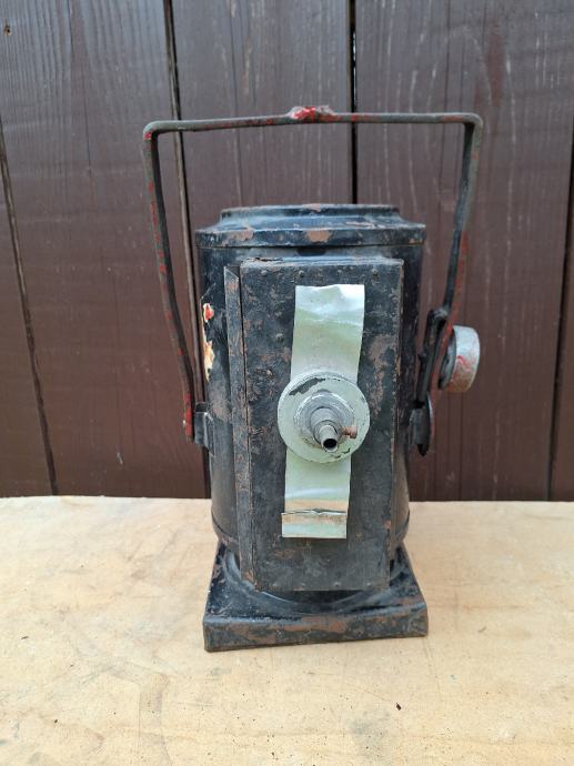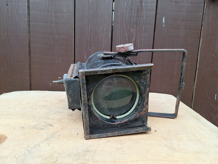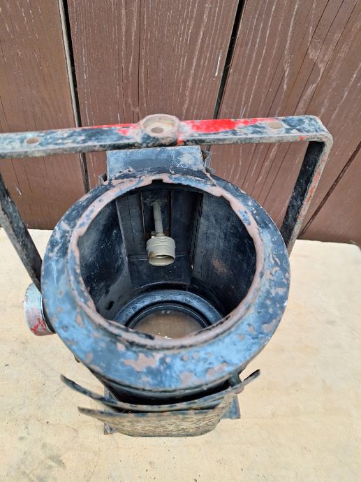 Vrlo stari kazališni reflektor kojem nedostaje stražnji poklopac i kabel, ali ima sve ostalo, uključujući i leću, i odlična je osnova za izradu lampe.
