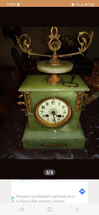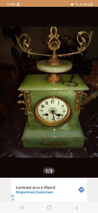 Stari sat - zeleni mramor u ispravnom stanju , dimenzije su visina 37 cm , širina 21 cm , dubina 12 cm sat se prodaje uz garanciju i servisiran , Slanje poštom na odgovornost kupca za pogledati po dogovoru u Sl.brodu , zainteresirani info wiber ili WhatsApp + 31 0621828116 ili + 385 976706962