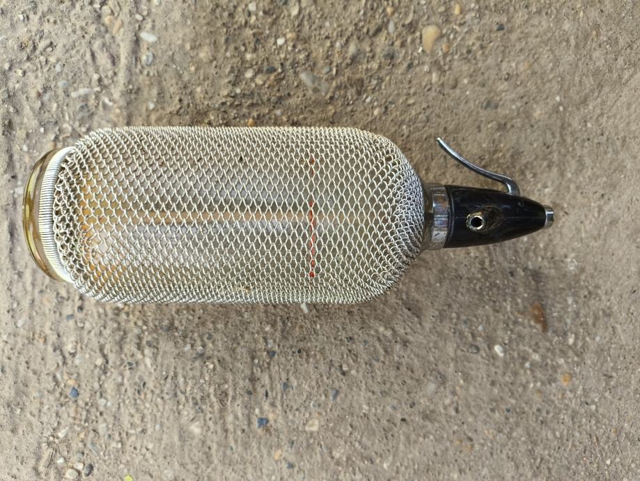 Prodajem stari sifon za sodu/retro boca sa zaštitnom mrežom.Vjerovatno proizvodnja oko 70'-80'-tih godina.Očuvano,stanje kao na slikama