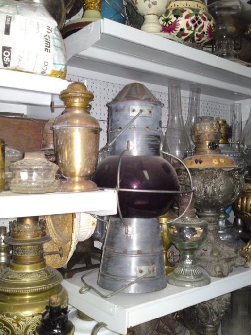 Stari signalni fenjer sa crvenim staklom.