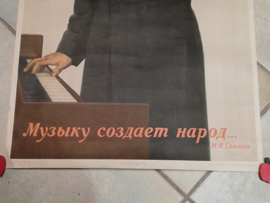 Plakat veliča sovjetsku glazbenu kulturu. Autor: I. Grinštein; urednik: M. Sergeeva, izdanje. br. 716 od 27.03.1954.g., tipografija "Crveni proleterijat"; izdavač: Ministarstvo kulture SSSR-a, Moskva, tisak: IZOGIZ.