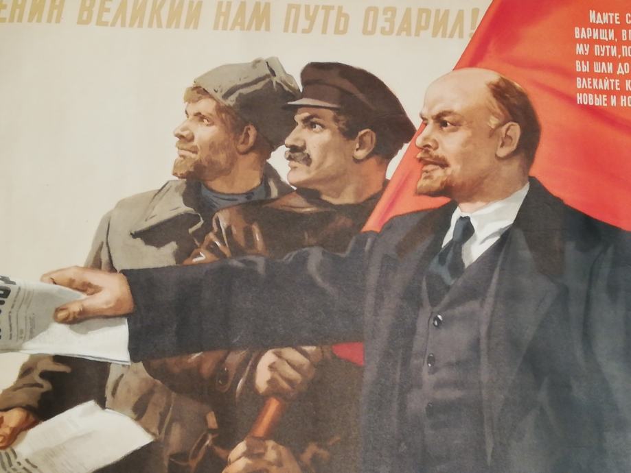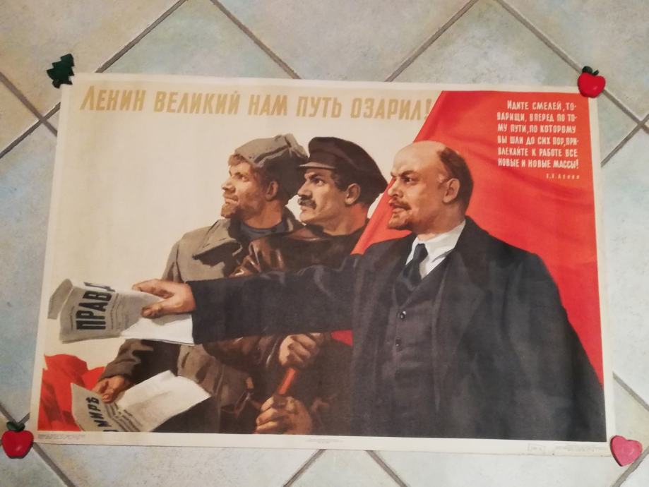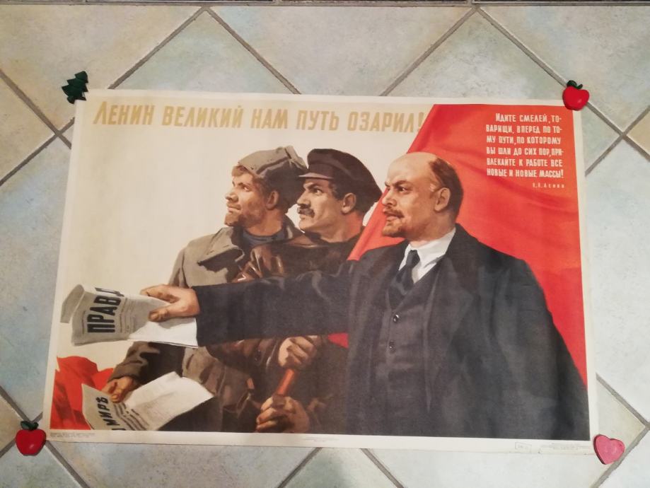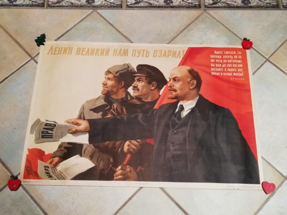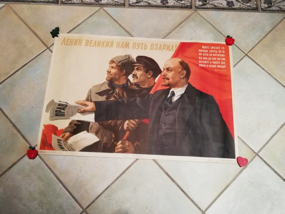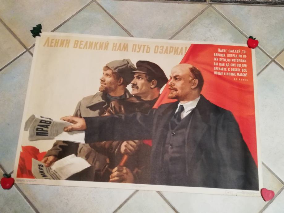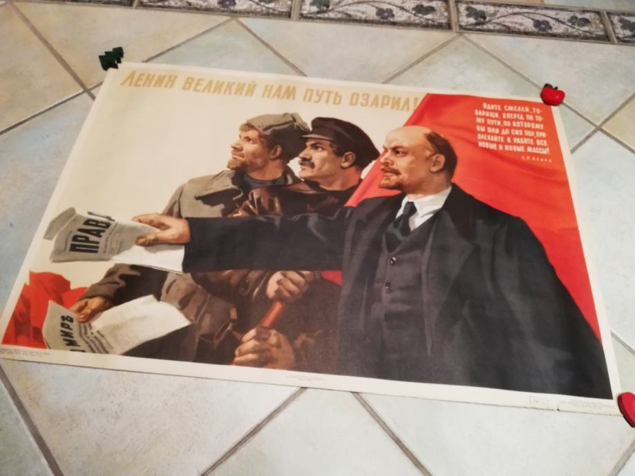 Stari sovjetski plakat iz 1955.g., posvećen Lenjinu i veličanju komunizma i sloganom: LENJIN NAM JE VELIKI PUT OZARIO.