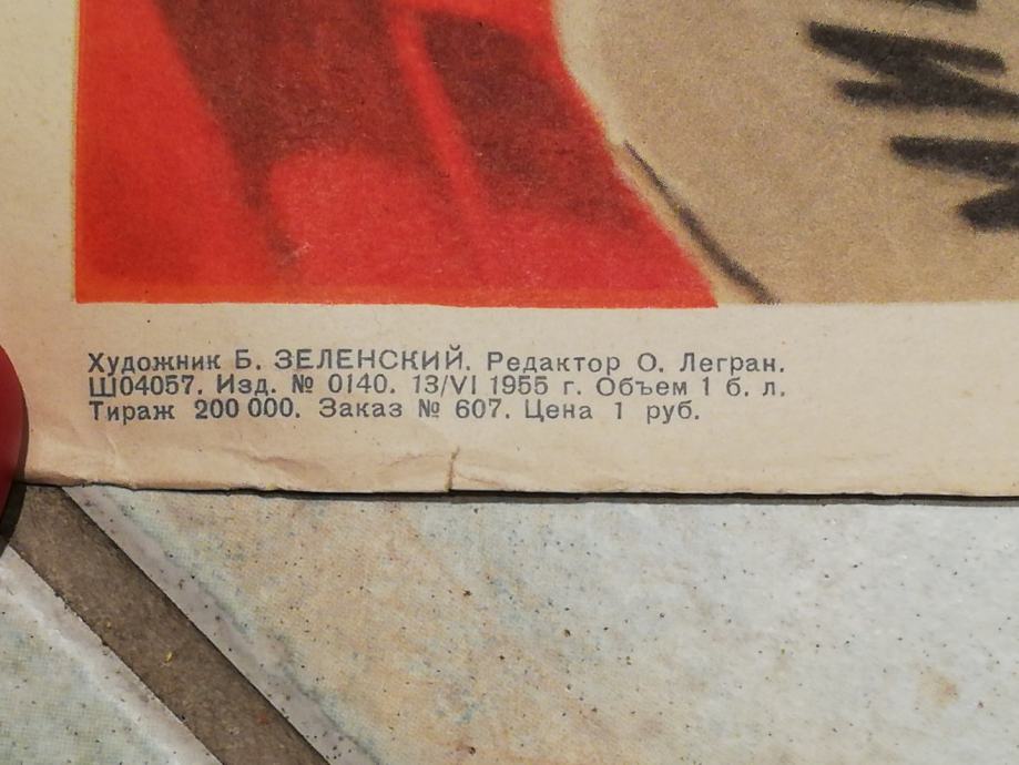 Autor: B. Zelinski; urednik: O.Legran, izdanje. br. 0140 od 13.06.1955.g., tipografija "Crveni proleterijat"; izdavač: Ministarstvo kulture SSSR-a, Moskva, tisak: IZOGIZ.