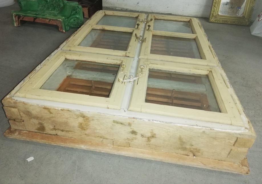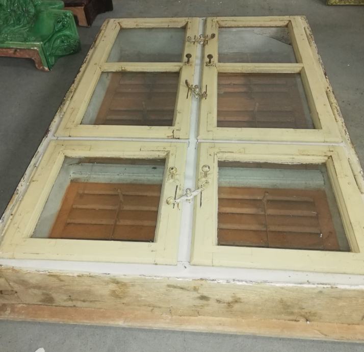 Stari štok od hrastovine, sa 4 prozorska krila, 2 veća i 2 manja, sa 4 krila šalukatri, 2 veća, 2 manja, izuzetno dobro sačuvano, staro preko 100 godina, idealno za dekoraciju zidova ili kao pregrada između 2 prostora, a u sredini može biti polica za dekorativne predmete.