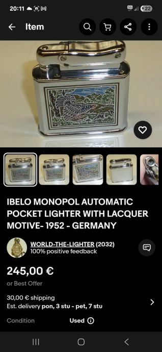 Stari stolni upaljac IBELO MONOPOL u ispravnom stanju. Odlično ocuvan.