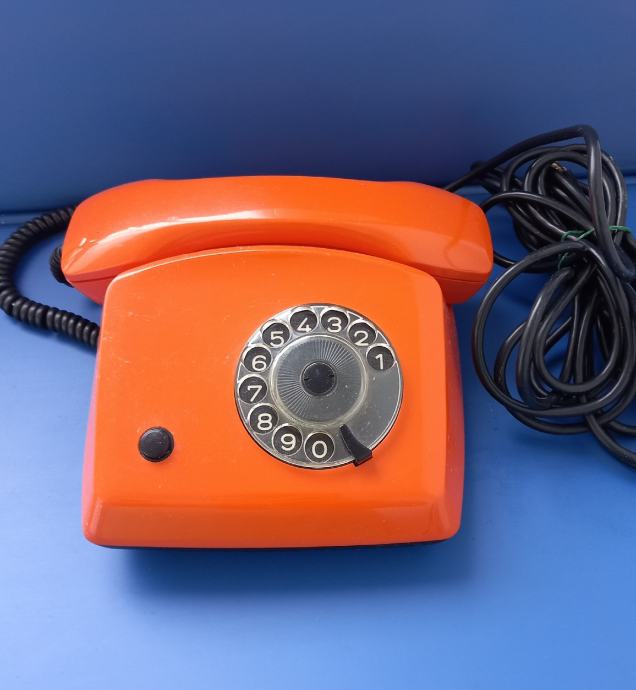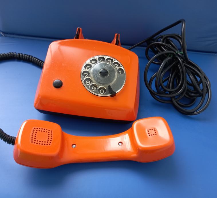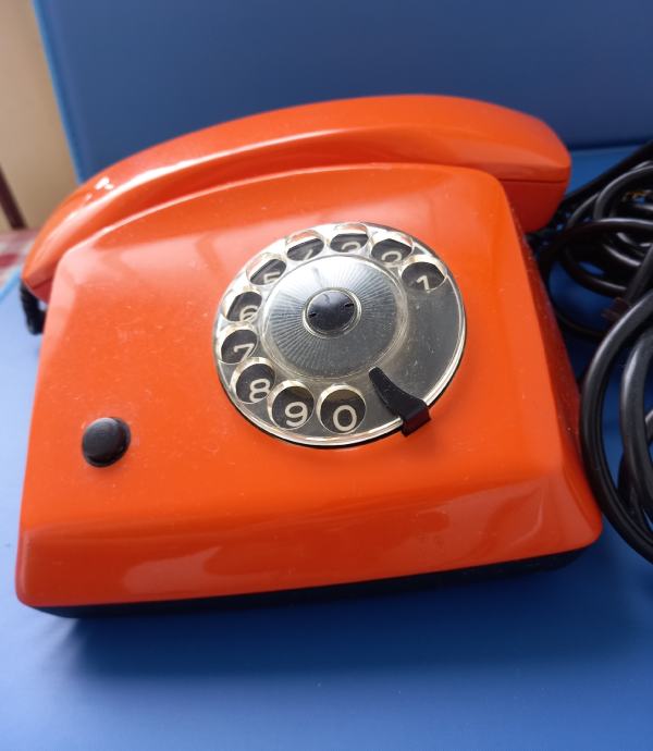 Predivan stari telefon, idealan za dekoraciju u popularnoj narančastoj boji