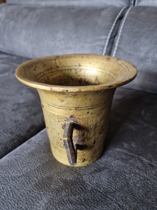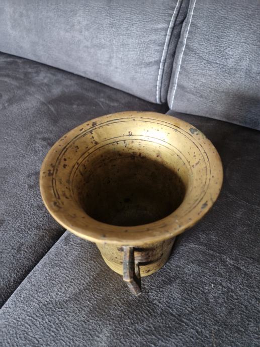 S početka 20.-og stoljeća, masivan , visina cca 13 cm a promjer otvora 14 cm. Odličan za dekoraciju. Tučka nema :)