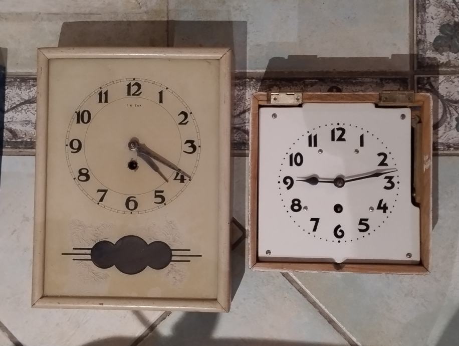 Stari zidni satovi u drvenom kućištu iz 1950tih, 2 komada u lotu .