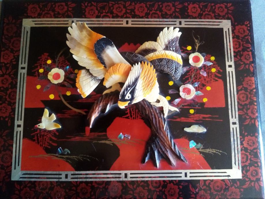 glazbenim mehanizmom, od ružinog drveta, izrađen u Japanu, ukrašen sedefom (školjka bisernica), dim.