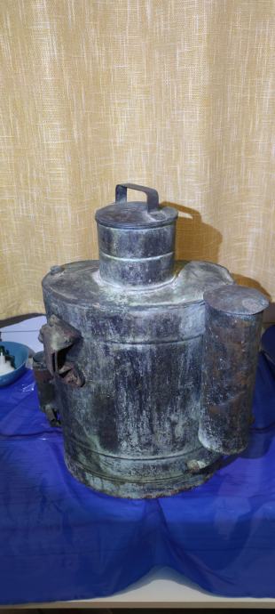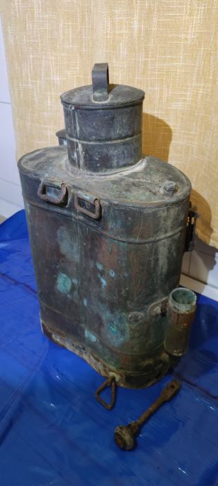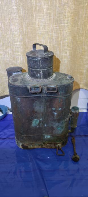 Prodajem starinsku bakrenu prskalicu za vinograd . Nije više u funkciji te može nakon čišćenja samo poslužiti kao ukras .