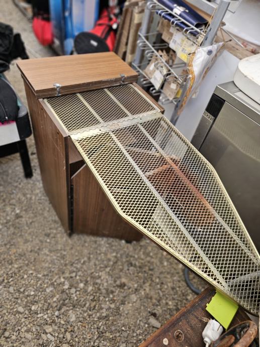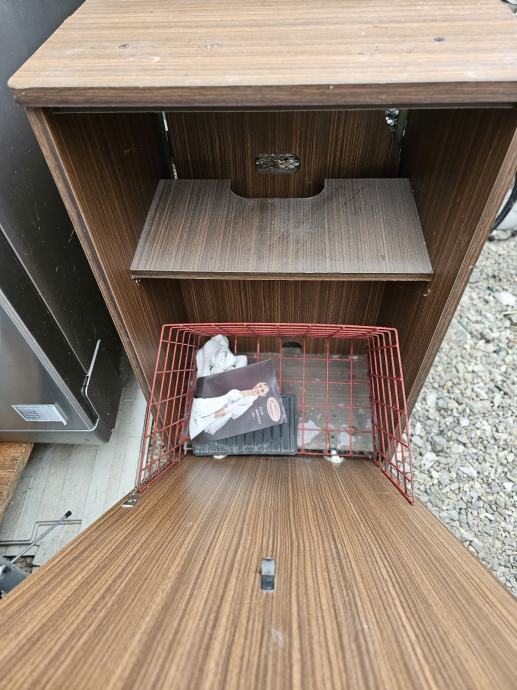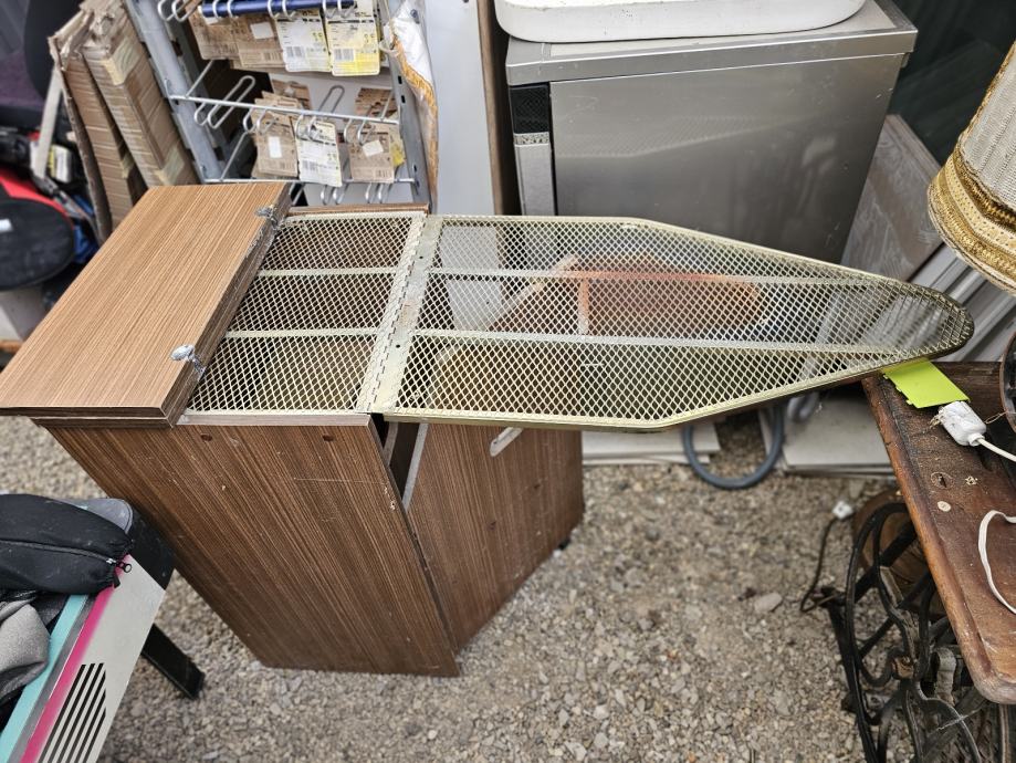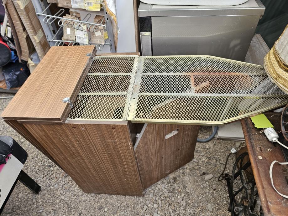 Ormarić za veš sa prednje strane i stražnja strana koji se otvara u dasku za peglanje.