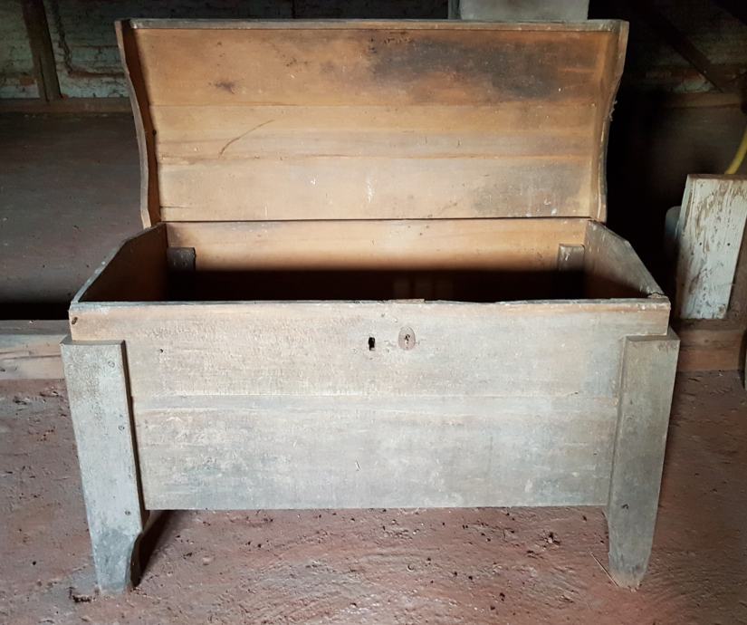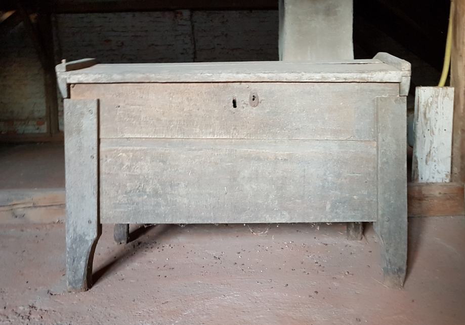 Detalji vidljivi na priloženim slikama. Na drugoj je slici stavljen stolac da se stekne dojam veličine ove izuzetno velike i stoga raritetne škrinje (stolac nije dio prodaje na ovom oglasu).