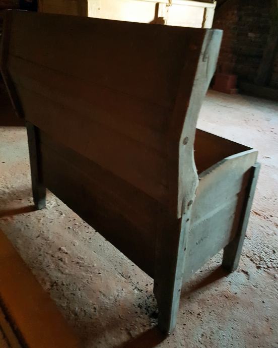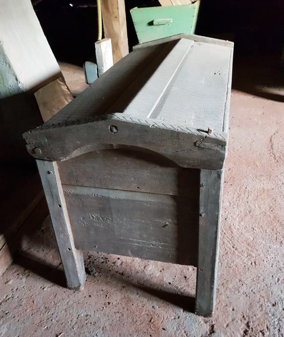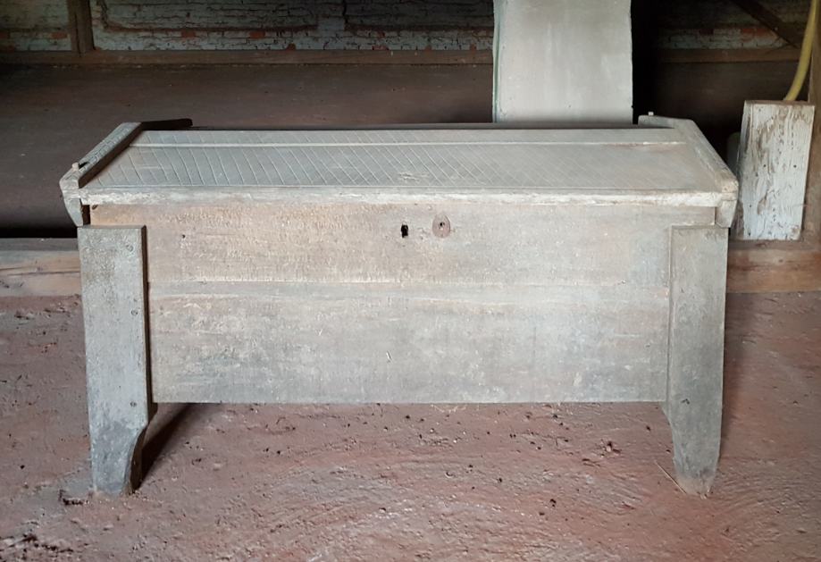 Starinska škrinja, drvena, kvalitetna izrada s rezbarijama na poklopcu. Služila je za pohranu sjemena i sličnog. Spajano samo s drvenim klinovima, bez metalnih spojnih dijelova (čavala i šarafa). Škrinja je vrlo prikladnih dimenzija i za standardne (manje) prostore te je zato vrlo pogodna za restauraciju!