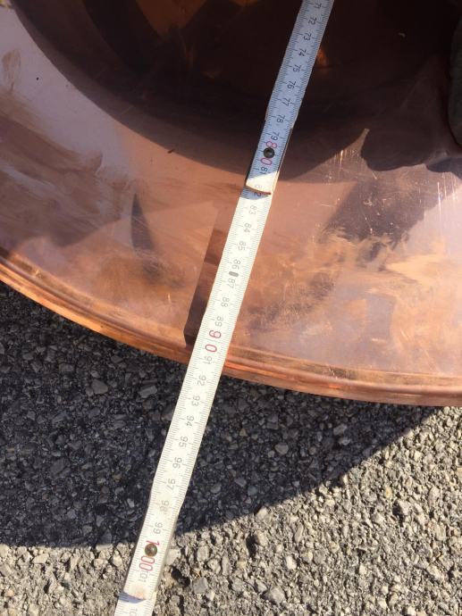 Visina cca. 138 cm, promjer otvora cca. 12,5 cm, visina do vrha otvora cca. 107 cm, promjer postolja 91,5 cm.