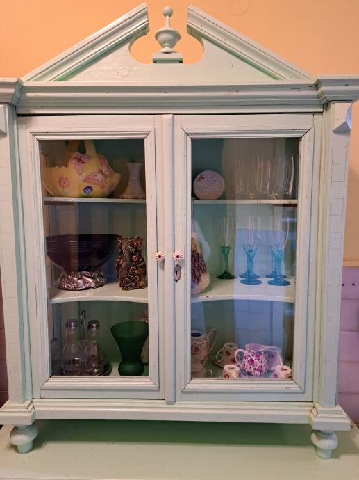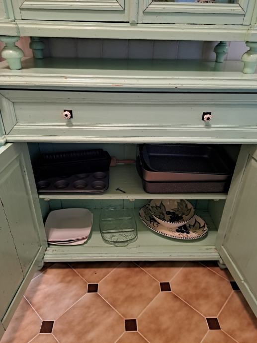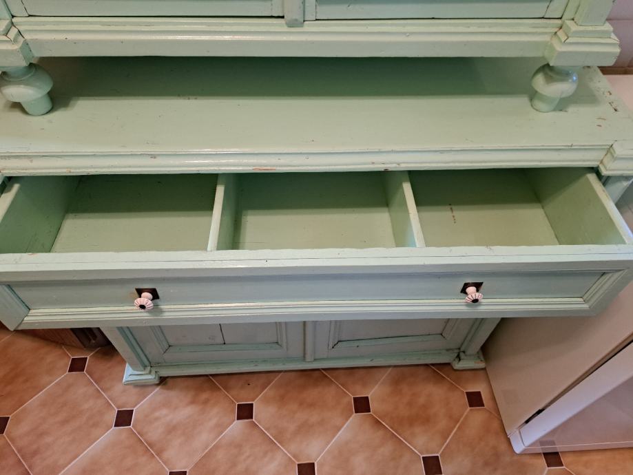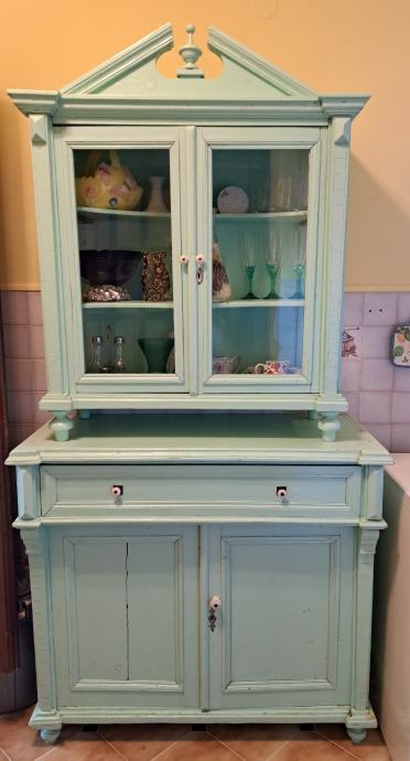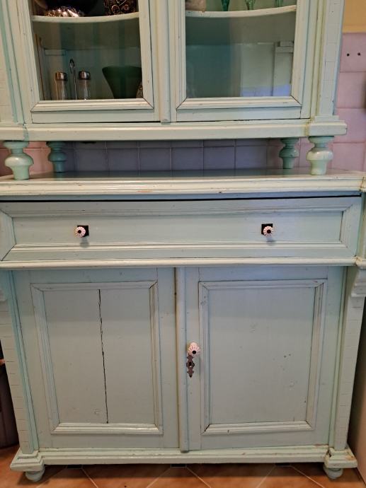 Kredenca, stara više od 100 godina, uredjena, obojana. Korištena kao dio kuhinje. V 210 x š 107 x d 48
