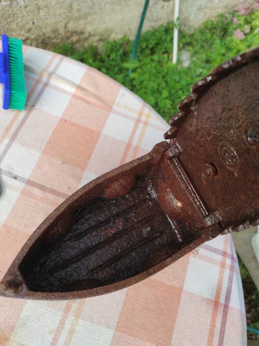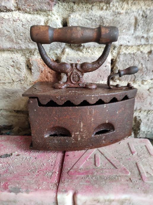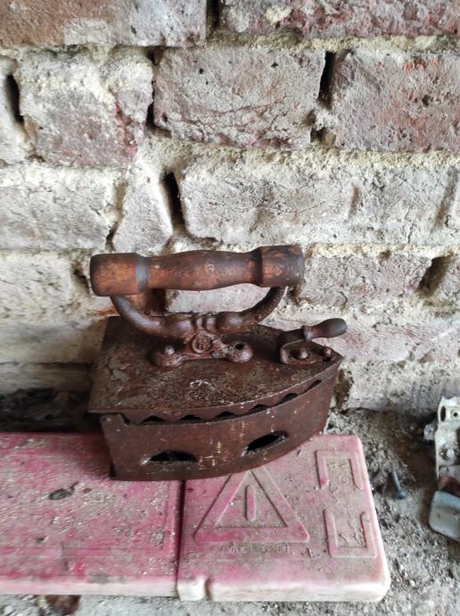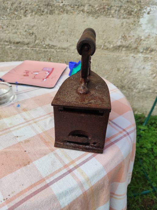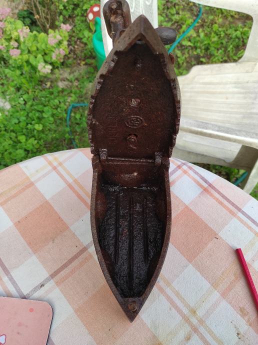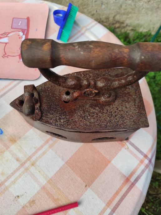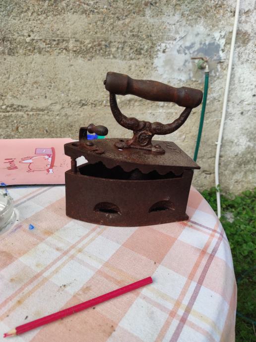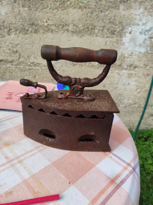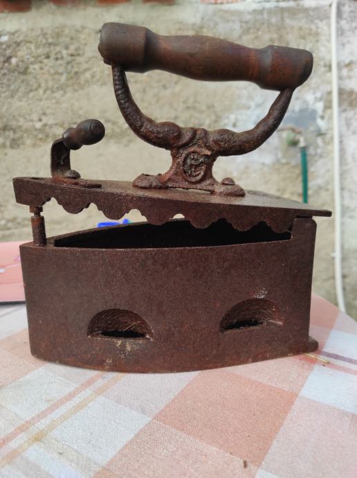 Stara pegla od lijevanog željeza u koju se stavljao zar ili žeravica i tako se peglalo,ne znam točno koliko je stara,ali bila je od moje prabake.Molim kontaktirati porukama na Viber ili njuskalo a saljem postom ili tiskom ili u dogovoru sa kupcem, pogledaj slike!! Mogu ju ja osmirglati i ofarbati ali mislim da je bas ovakva kakva je zanimljiva za ukras u vikendici, kleti ili kuci, kako kome paše .Stanje kao na slikama.