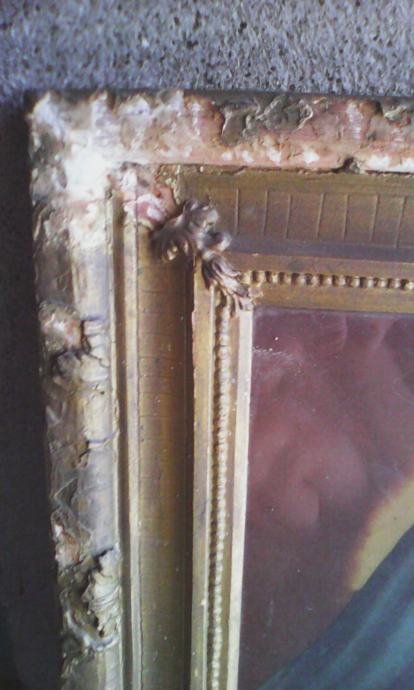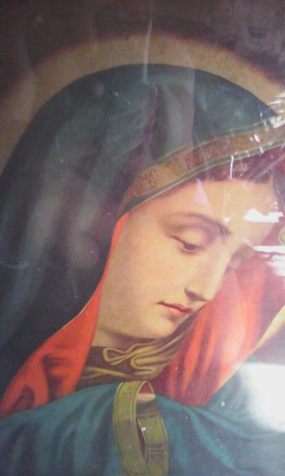 Starinska slika oligrafija na platnu jako lijepi rad Bogorodice u starinskom drvenom ramu sa ukrasima stare sokacke obitelji prvi susjeda JOSIPA KOZARCA