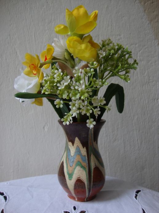 Predivno ručno oslikana stara vaza od terakote ,