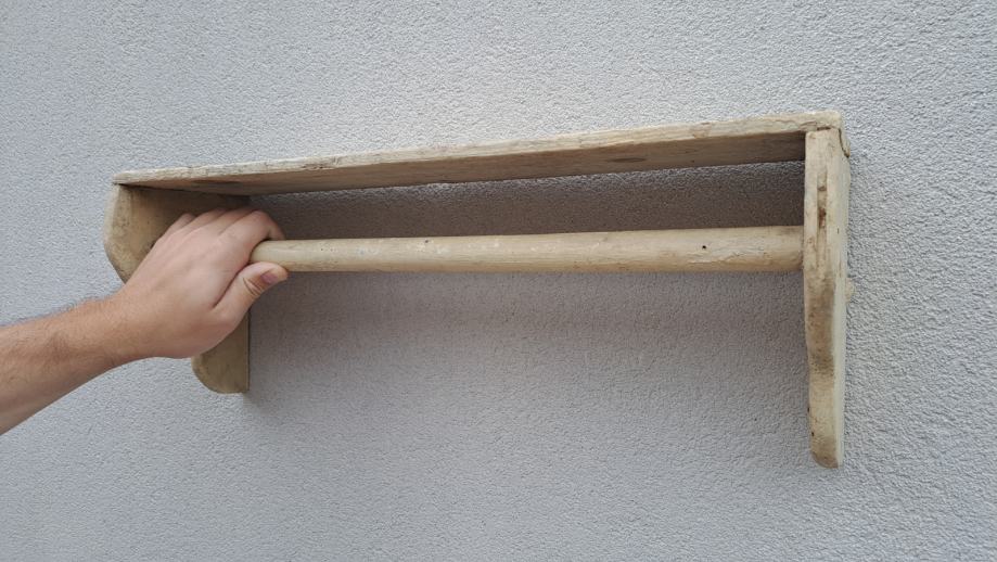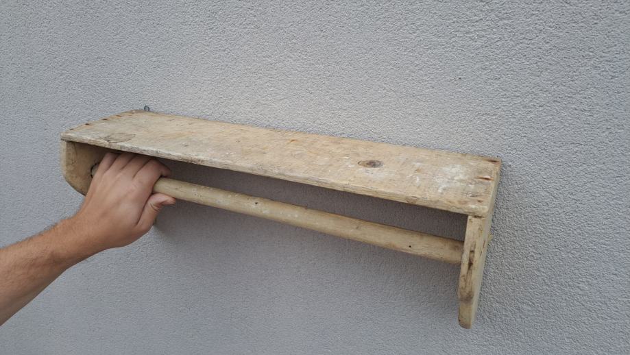 Prodaje se zidna, obojena polica stara oko 90 godina. Dimenzije police su 55 x 14 x 21 cm. Potrebno je obnoviti boju.