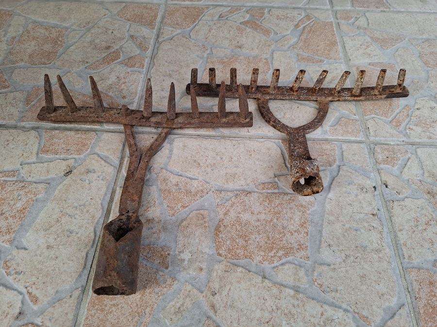 Prodajem starinske grablje,rad majstora kovača,interesantno za kolekcionare starog alata,ili dekoraciju a mogle bi se i koristiti ako se stavi držalica,u kompletu za 30 eura,po komadu 20 eura,stanje kao na slici,šaljem pouzećem na trošak kupca