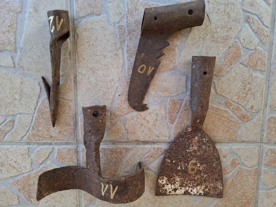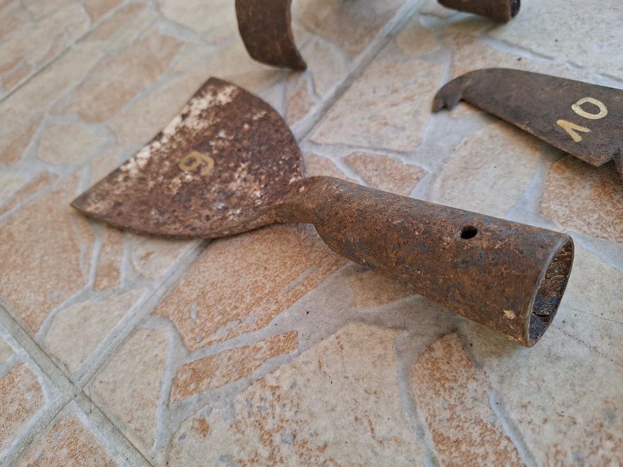 Prodajem starinske alate sa slike,4 komada,stanje kao na slici,bez držalica,za dekoraciju ili upotrebu (ako se nasadi držalo),šaljem pouzećem ili tiskom na račun kupca,u kompletu za 15 eura